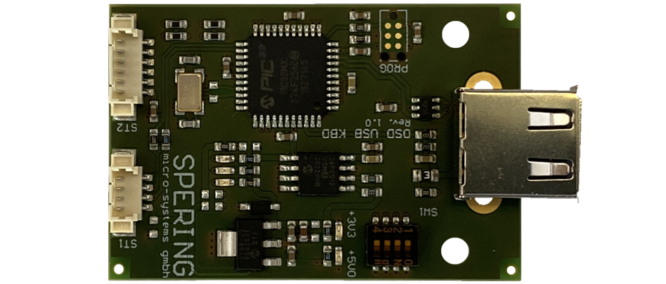 Die Baugruppe OSD USB KBD ist optimal auf den OSDcck 3.0 abgestimmt und bietet ein vollständiges HID-Interface für USB-Tastaturen aus dem PC-Bereich. Alle Tastatur-Funktionen werden unterstützt. Die Baugruppe ist für die direkte Frontplattenmontage mit USB-Buchse Typ A vorgesehen. Auch eine Nachrüstung älterer OSDcck 3.0 ist nach Softwareupdate und minimaler Umrüstung möglich.